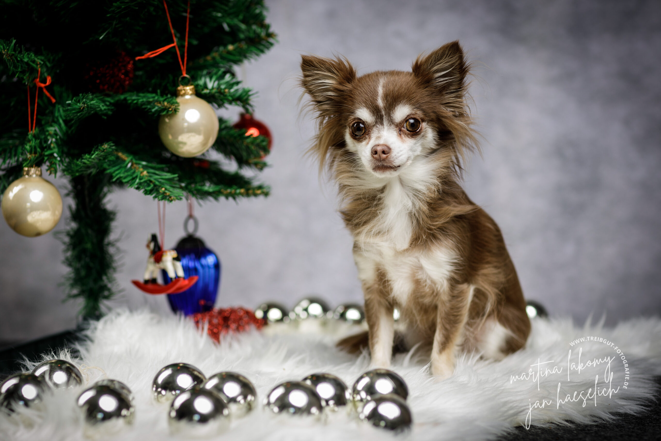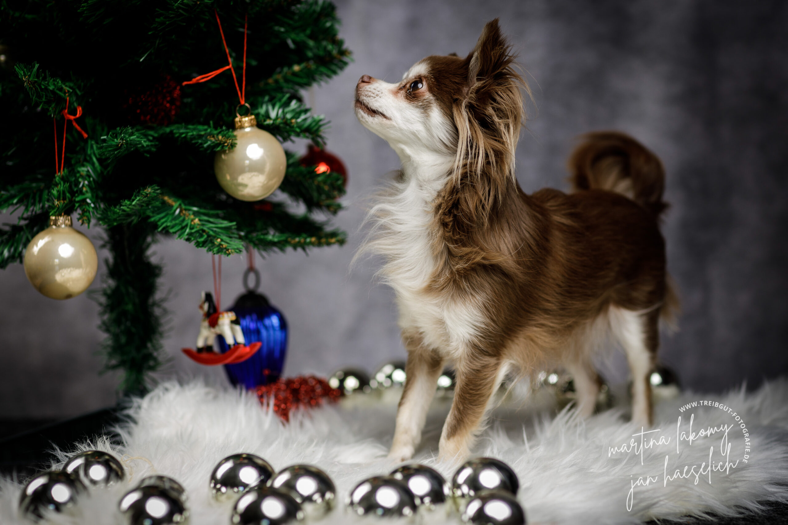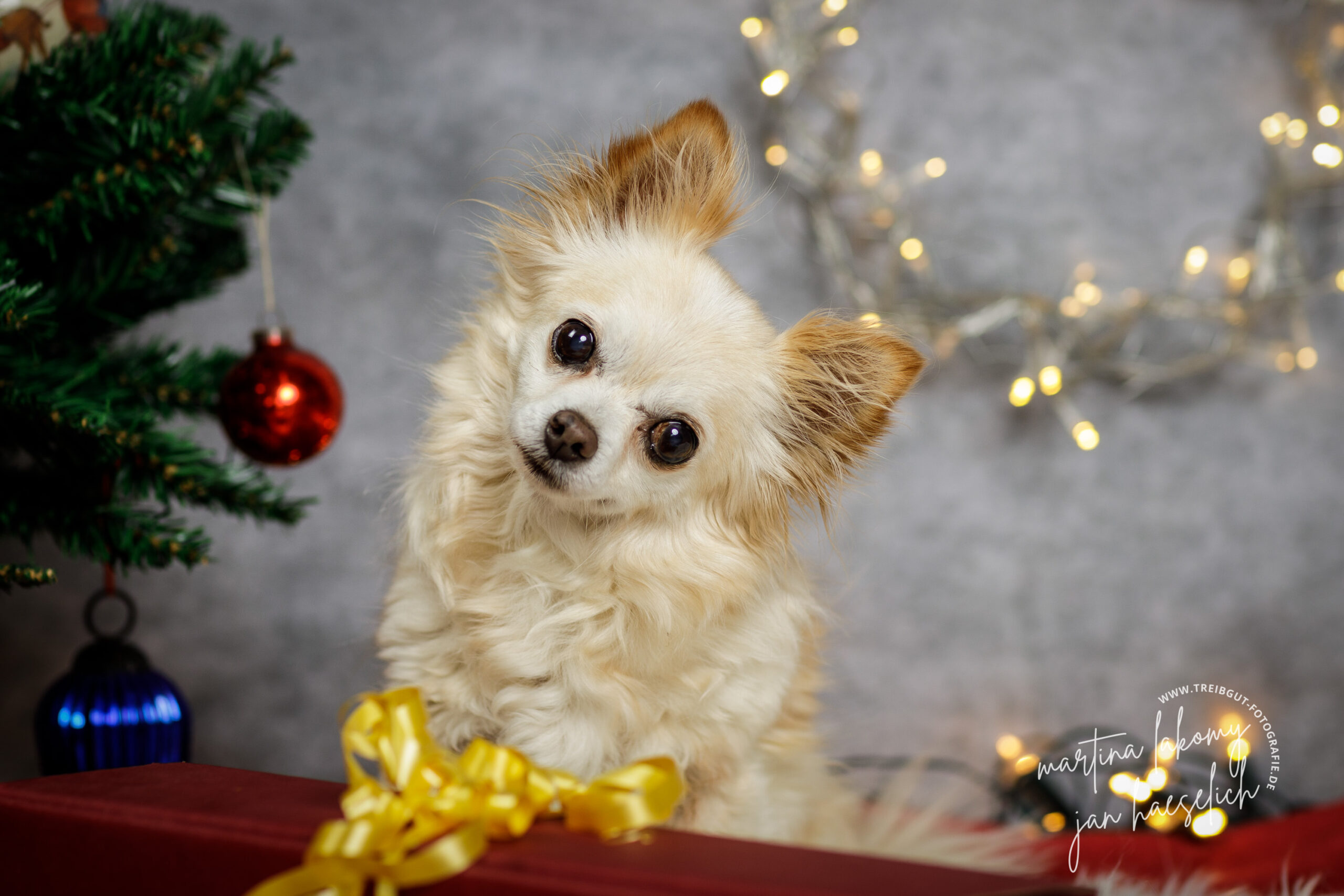 An drei Tagen im November und Dezember 2022 bieten Martina Lakomy und ich Shootingdays für weihnachtliche Hundefotos an. Jeder Hund bekommt bis zu einer halben Stunde vor unseren Kameras im weihnachtlichen Setting. Wir bauen zwei Sets auf, einmal für große und einmal für kleine Hunde.